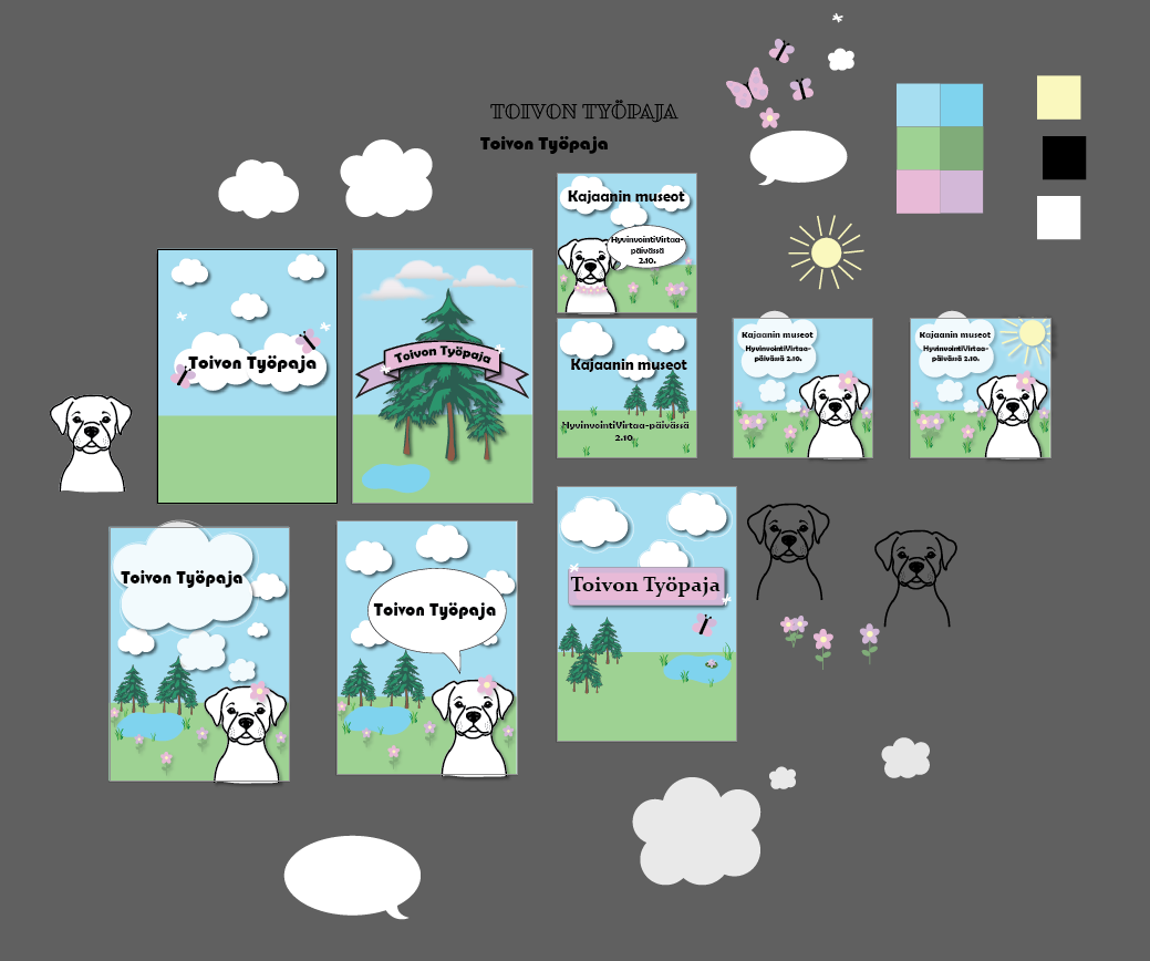 Topin aikana pääsin digitoimaan kuvia, tekemään pinssejä ja magneetteja, suunnittelemaan ysäri teemaisia julisteita tapahtumaan, tekemään museomestarin viimeiseen näyttelyyn näyttely materiaalit, tulevaan ruokanäyttelyyn mainostuspohjia ja pinssejä, tulevaan Toivon Työpajaan mainosmateriaalia ja sain itse suunnitella museolle jotain uutta.